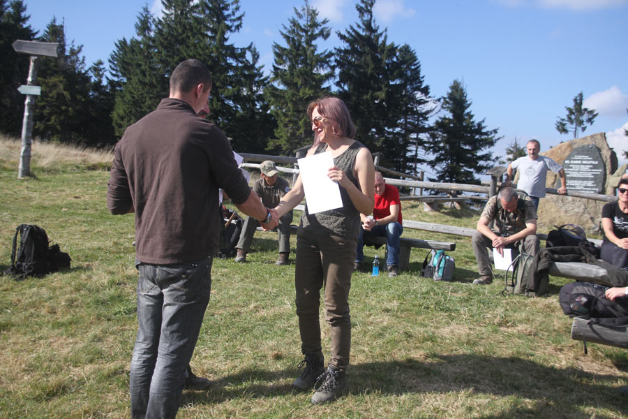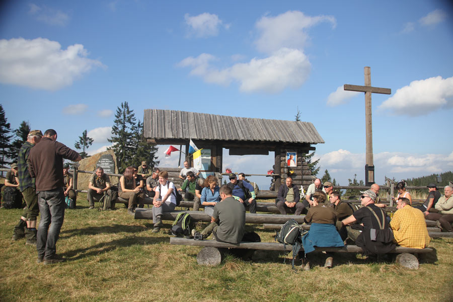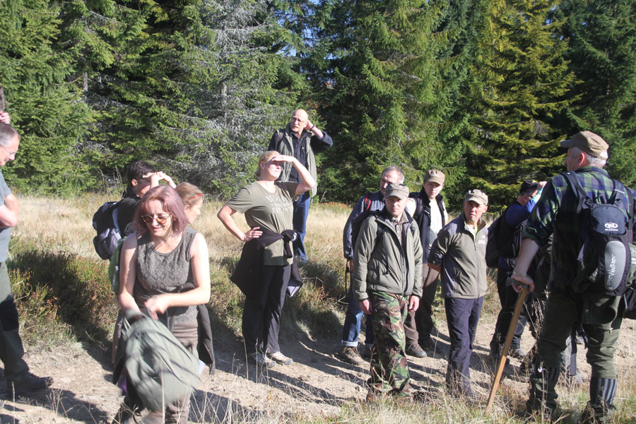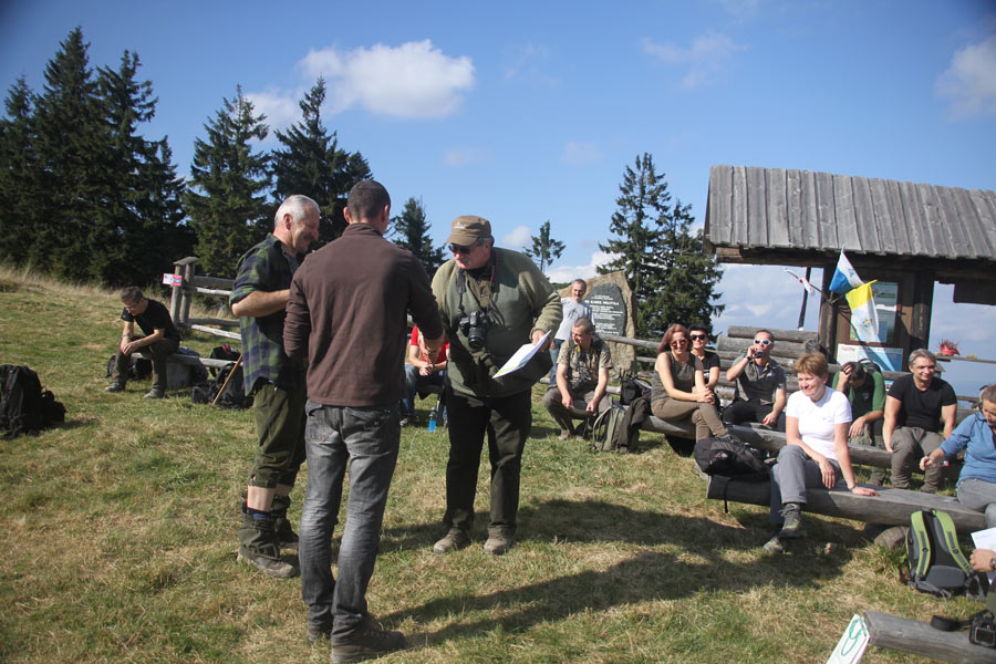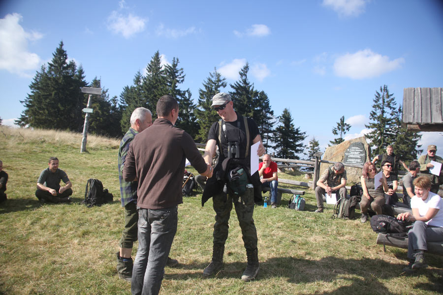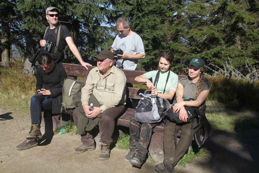 Dzień drugi (terenowy) rozpoczęliśmy od poznawania gorczańskiej ostoi głuszca w części podległej Nadleśnictwu Nowy Targ –przewodnikiem był Z-ca Nadleśniczego, Andrzej Głodkiewicz nasz kolega z KOK. Trasa biegła z Obidowej przez Solisko i Rozdziele (masyw Turbacza), oraz Mostownicę na przełęcz Borek. Kończyła się już na terenie Gorczańskiego PN. Na Hali Turbacz wszyscy uczestnicy warsztatów otrzymali od organizatorów certyfikaty uczestnictwa.